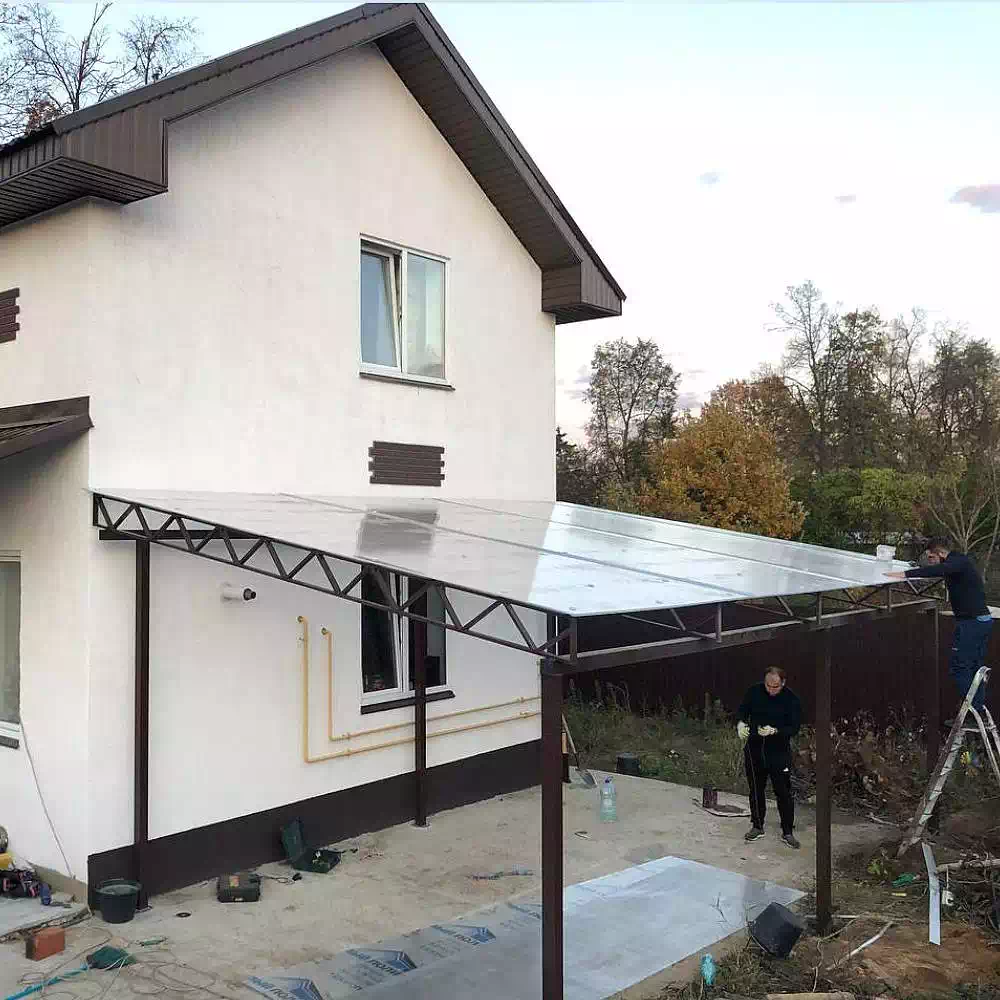 За день на даче изготовили арочный навес 5 на 7 с покрытием поликарбоната. Привезли уже готовые крашенные фермы и весь остальной материал. Все за собой убрали и увезли мусор. Молодцы!